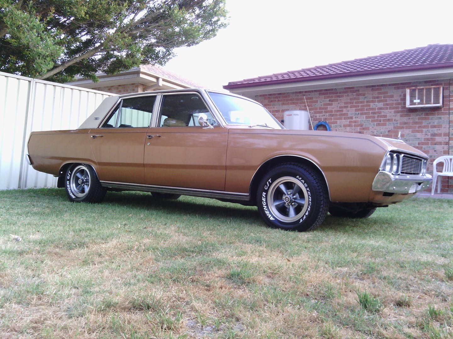 The car ran on LPG + petrol when we got it so the gas tank and system were removed and it now runs on petrol only. We didn't do a full restoration just freshened up the engine with headers, 600 vacuumed secondary 4 barrel Holley Carbi, mild cam and unleaded seats on rebuild of the V8 318 Fireball. Automatic transmission remains the same, disc brakes and mag wheels.